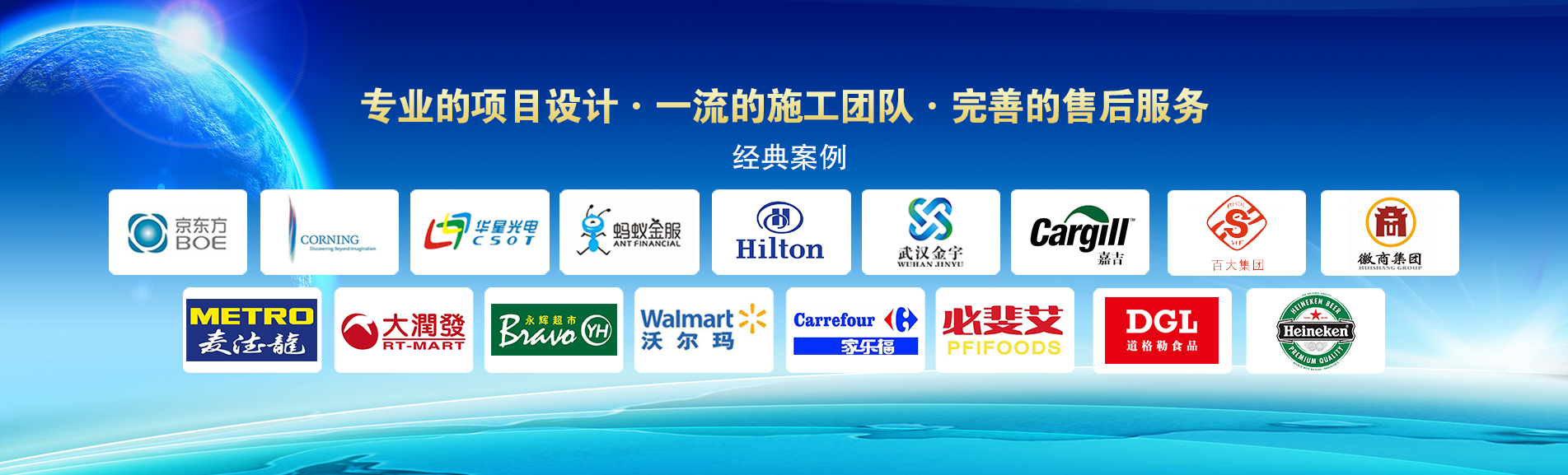 冷凍冷藏設(shè)備大型冷庫(kù)項(xiàng)目:   武漢中百物流冷庫(kù)(40000㎡)、蘇州、北京普洛斯大型物流庫(kù)(17000㎡)、沈陽(yáng)佳德物流冷庫(kù)(20000㎡)、上海東航配餐物流庫(kù)(6000㎡)、杭州華商勾莊物流冷庫(kù)(24000㎡)、安徽安心蔬菜綠色食品冷庫(kù)(12000㎡)、武漢金宇冷庫(kù)(35000㎡)、必斐艾食品廠(14000㎡)、中國(guó)-東盟(百色)農(nóng)產(chǎn)品交易中心冷庫(kù)物流工程(30000㎡)、遵鐵物流冷鏈物流區(qū)建設(shè)項(xiàng)目中心冷庫(kù)物流工程(16500㎡)、長(zhǎng)沙云冷產(chǎn)業(yè)園冷庫(kù)物流工程(21000㎡)等;大型中央空調(diào)項(xiàng)目:   武漢康寧顯示玻璃廠廠房、武漢京東方模組廠房、武漢華星光電模組廠房、深圳華星光電模組廠房,杭州阿里巴巴辦公樓,舟山波音737機(jī)場(chǎng)辦公樓,南京江北能源站、上海金融大酒店等